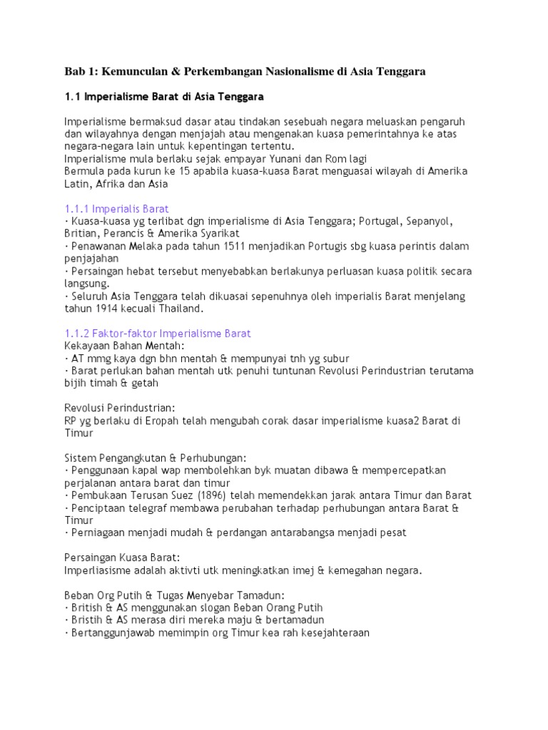 Nota Sejarah Tingkatan 5 Bab 1 Kemunculan Perkembangan Nasionalisme Di Asia Tenggara Pdf